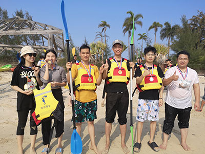 旅程的第二站,我們來到了巽寮灣迷人的海灘,坐上我們的皮劃艇,在藍色的海水上蕩起了雙槳。皮劃艇作為一種速度與耐力的體育項目,當然少不了來一場速度與耐力的競賽了,為此,我們還準備了獎牌。