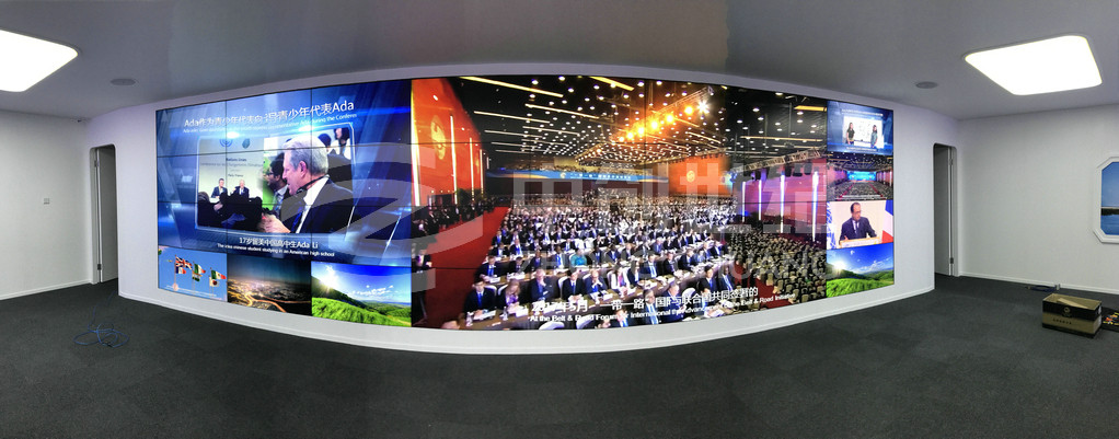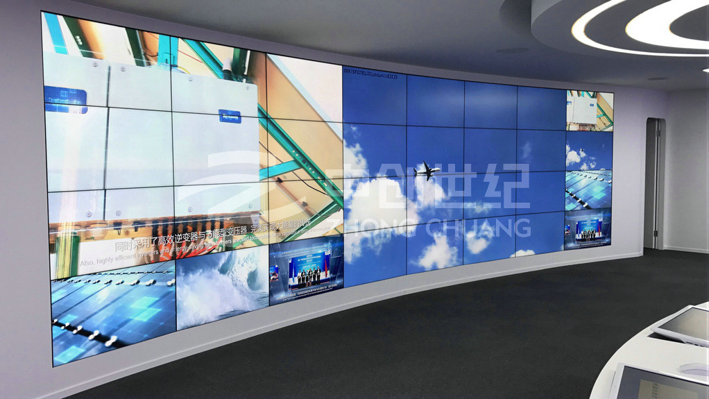 我司先后承接熊貓綠色能源集團常州云中心大屏拼接系統,項目包含控制系統、顯示系統、圖像處理系統、音響系統。中創克服曲面大屏無縫拼接難、色彩易失真等難題,將屏幕完整呈現,并在根據現場條件調整設備角度后達到視聽感知最佳效果。作為我司首例曲面大屏處理系統,絕佳的體驗向客戶展示了公司工程實力,也是中創對精益求精不懈追求體現。