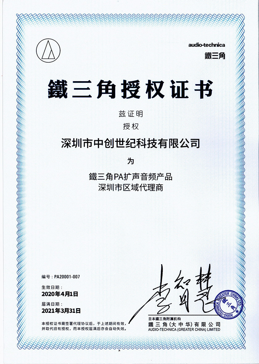 2025年鐵三角PA擴(kuò)聲音頻產(chǎn)品代理證書