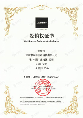 2025年BOSE專業(yè)產(chǎn)品代理證書