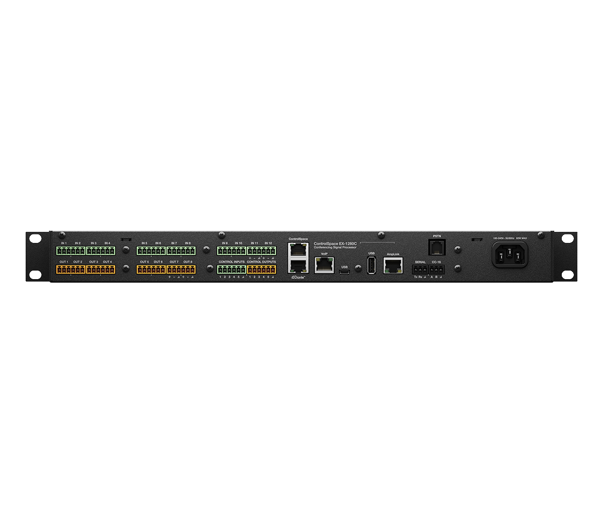 ● 12 個聲學回聲消除器 (AEC) 路由至模擬和 Dante? 輸入,多個參考信號通道能夠讓一個 EX-1280C 處理器支持多個房間,或多個處理器共享 AEC。